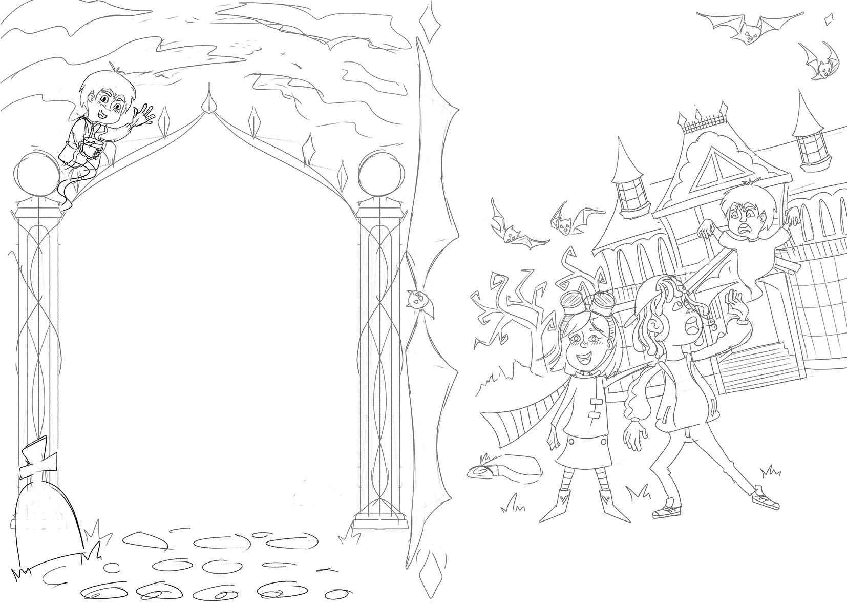 Additionally, I designed a simple map of the land where the haunted mansion is situated.